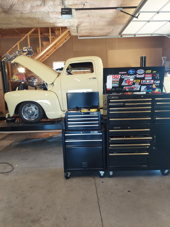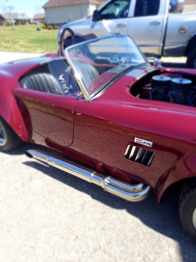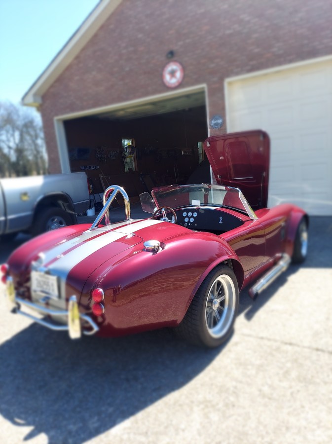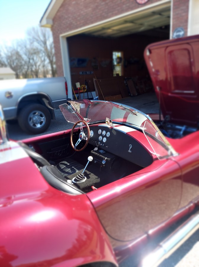 “And that’s a 1949 Chevy pick up truck that he is working on. His race car is a burgundy Cobra.”