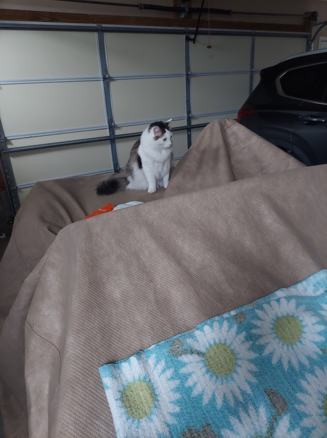 “That handle is the gear shift. If I could reach the clutch pedal with my left foot, I could shift with my right paw and we could take it for a ride!”