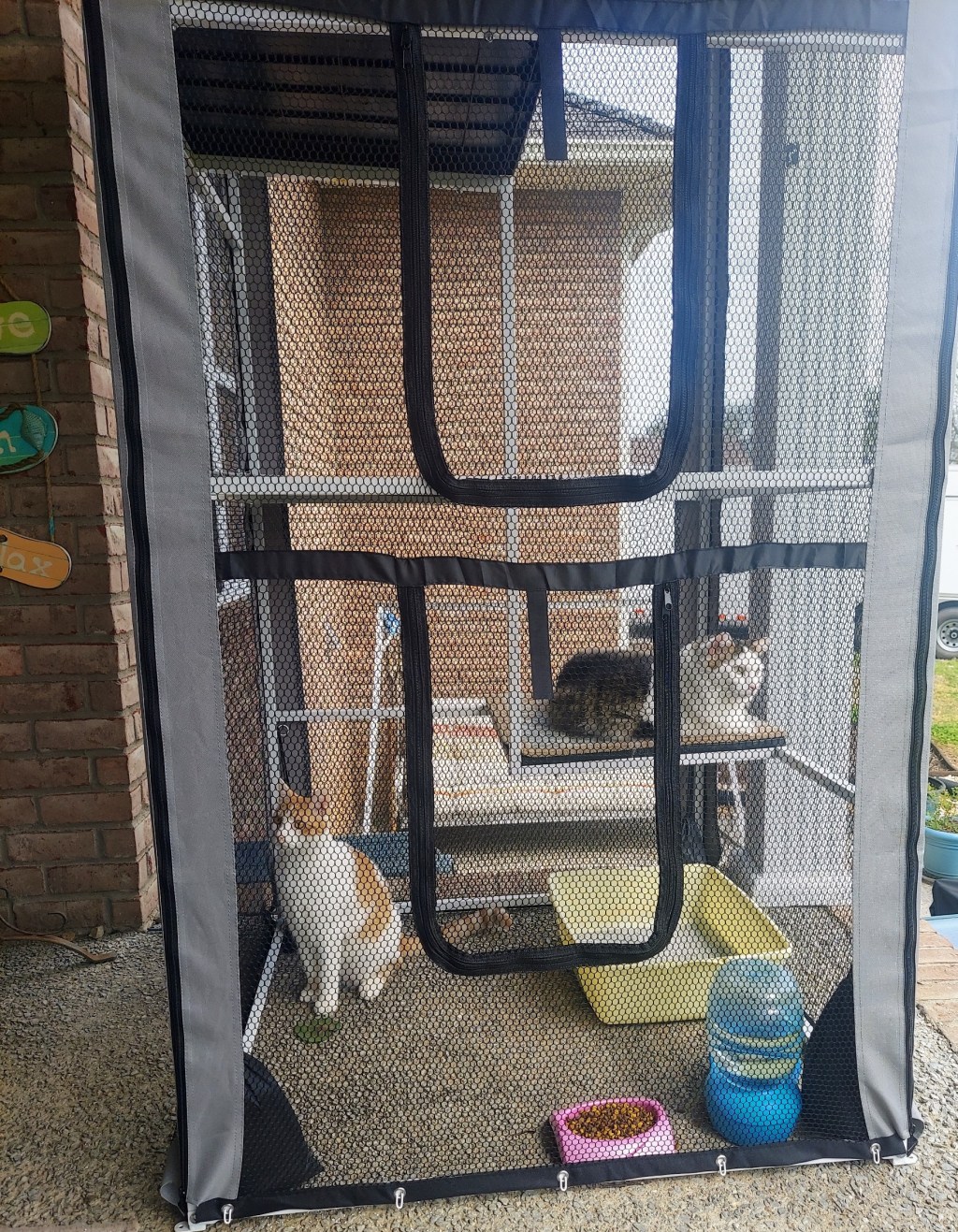 For inside cats, this a great way for them to get fresh air and enjoy the beauty of Mother Nature while staying safe from predators. Some can connect directly to windows for easy access in and out, others like this one require the cats to be carried in/out. Start with just a few minutes a day, have food, water and a litter box inside, and maybe a blanket with their scent so they know it is theirs. Sit nearby to make sure they can’t get out and so they know you are there for their security. Enjoy!