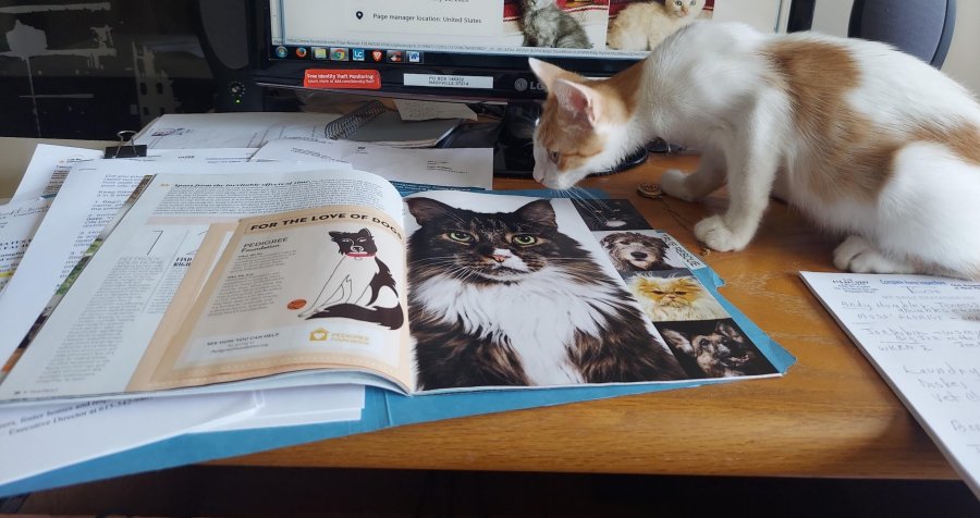 “Buddy, that’s an older cat featured in Paw Print magazine in an article called ‘Golden Years, Tips for Navigating The Homestretch With Your Super Senior’.”