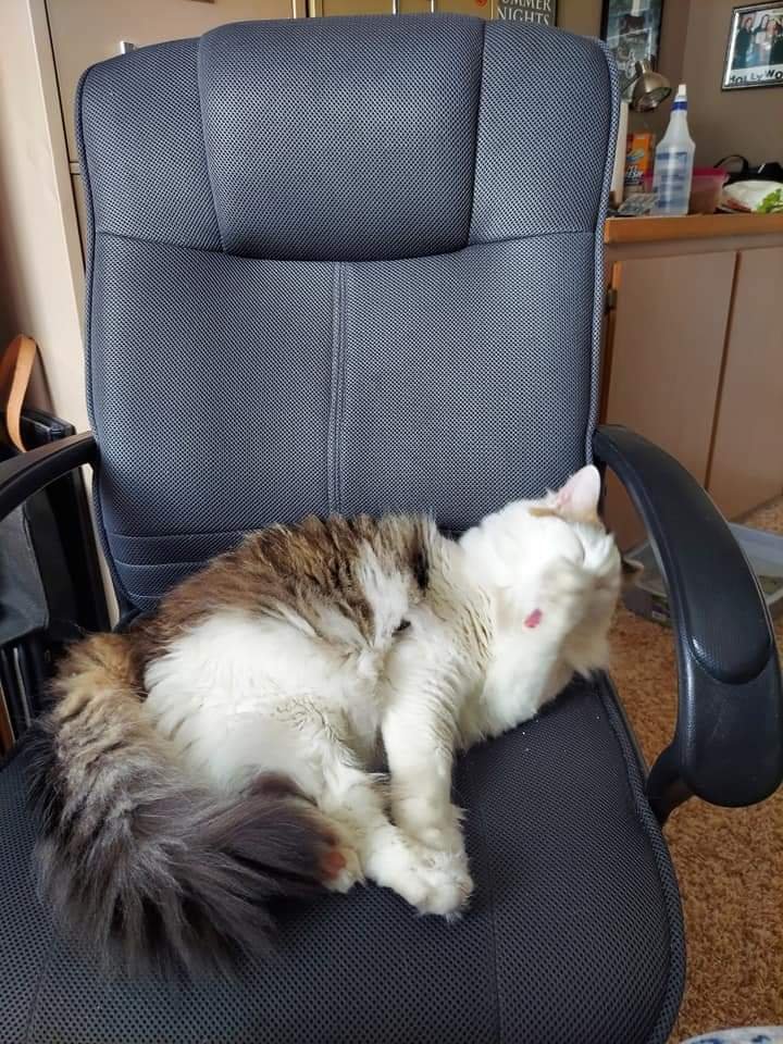 “Zzzzz, huh? What? I thought it was nap time. When’s nap time? I am in the executive chair and I say it’s nap time!”