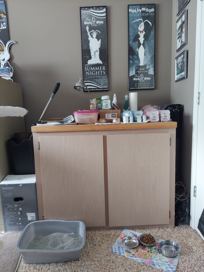 “Don’t forget our cat tree, Mom. And the bathroom and cafeteria.”