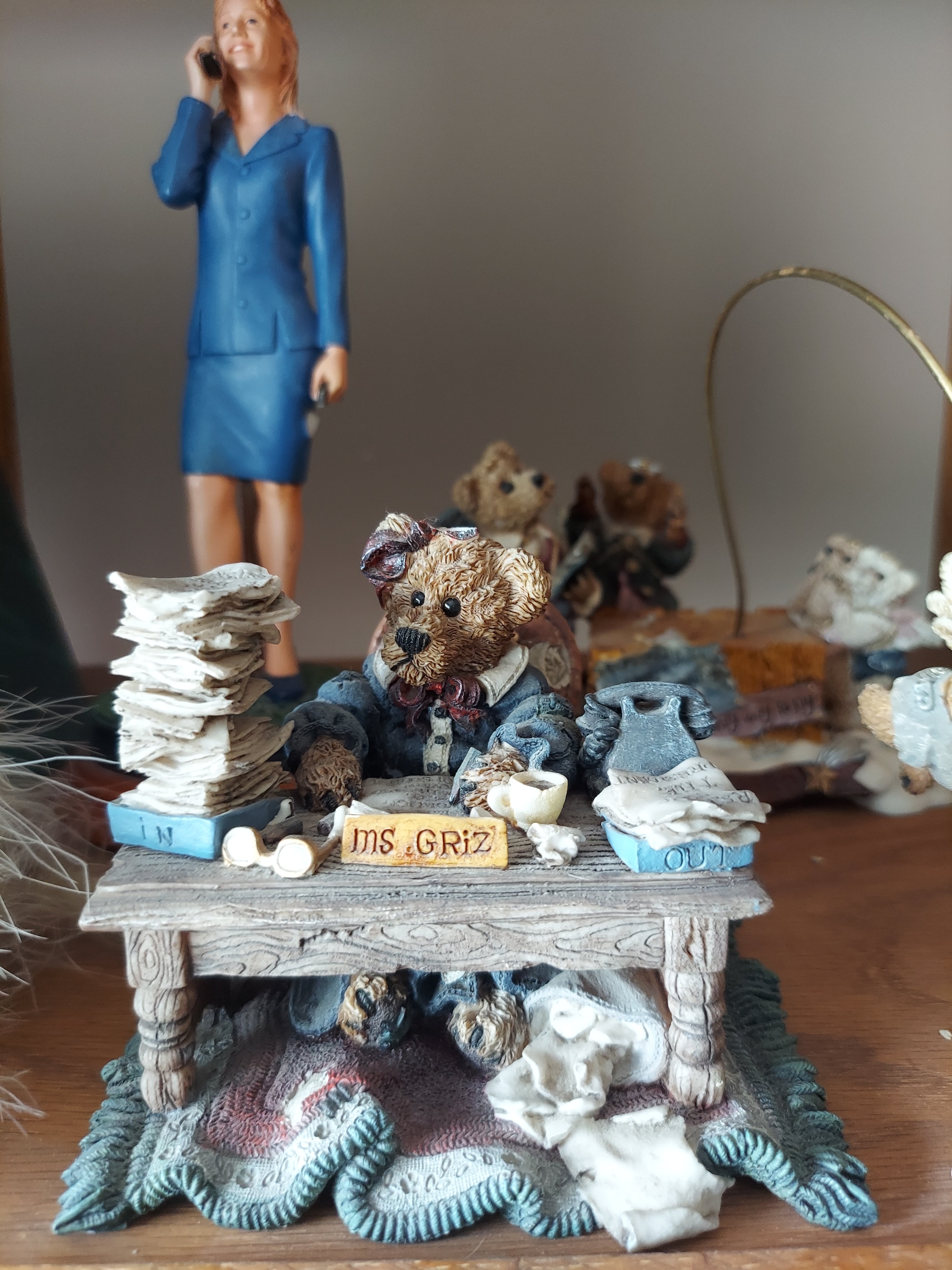 “Crosby is in the Inbox, sorting things to file away. It’s our break time, Mom. This work stuff is exhausting!! We’ll be back after lunch.”