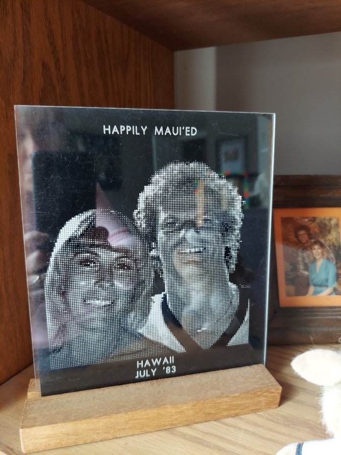 “Happily Maui’ed – that’s funny! Dad had curly hair back then! You were young!”