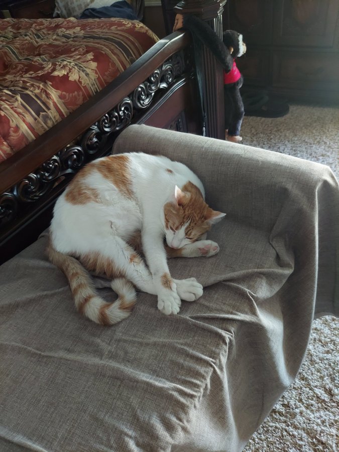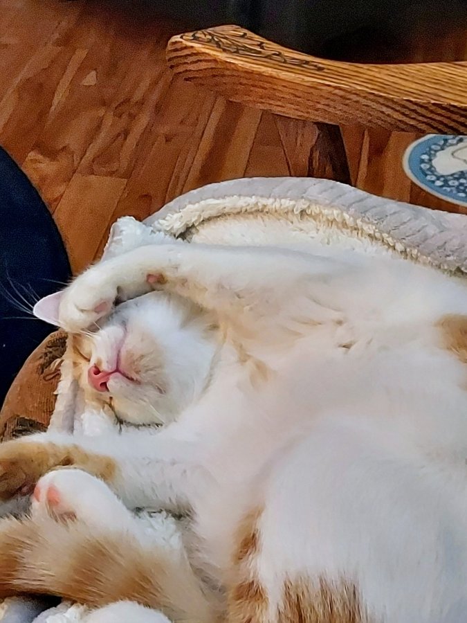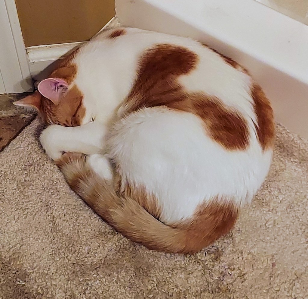 4) It’s my way of saying “Don’t bother me – I’m sleeping!! The “Do Not Disturb” sign is on. My sleep time is precious between playing with Crosby, watching birds, chasing ping pong balls, checking on Mom & Dad…