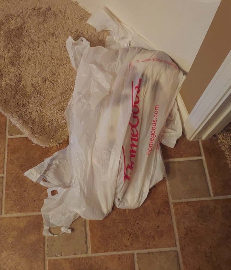 “Yes, Crosby – it’s my personal cape so no one else can steal it. I made it from a bag Dad brought home and it works really good. You can’t even see me, right? But when I throw off my Super Kitty cape, I can swat you like this, hee hee!”