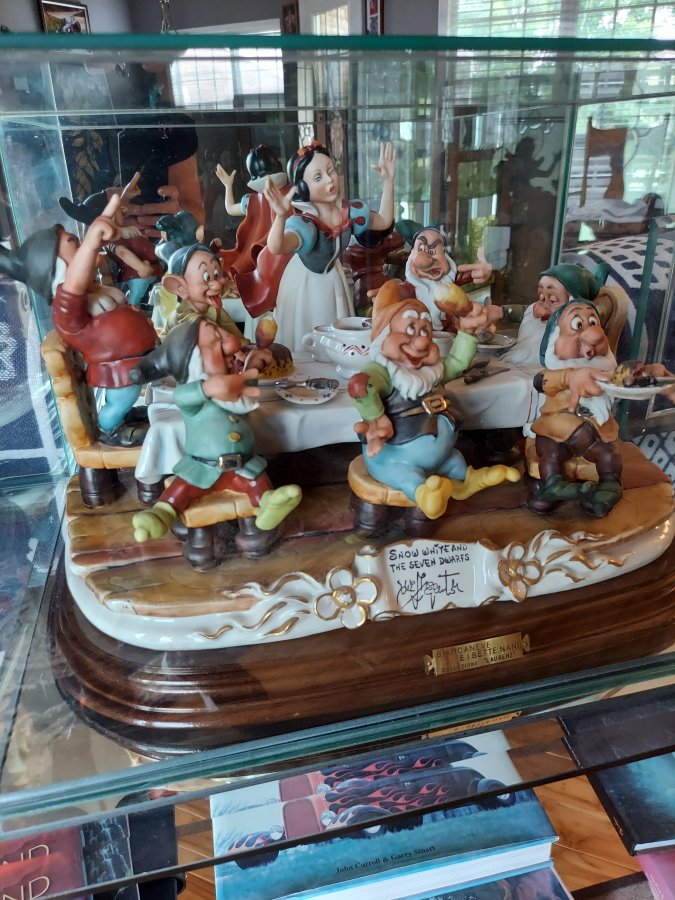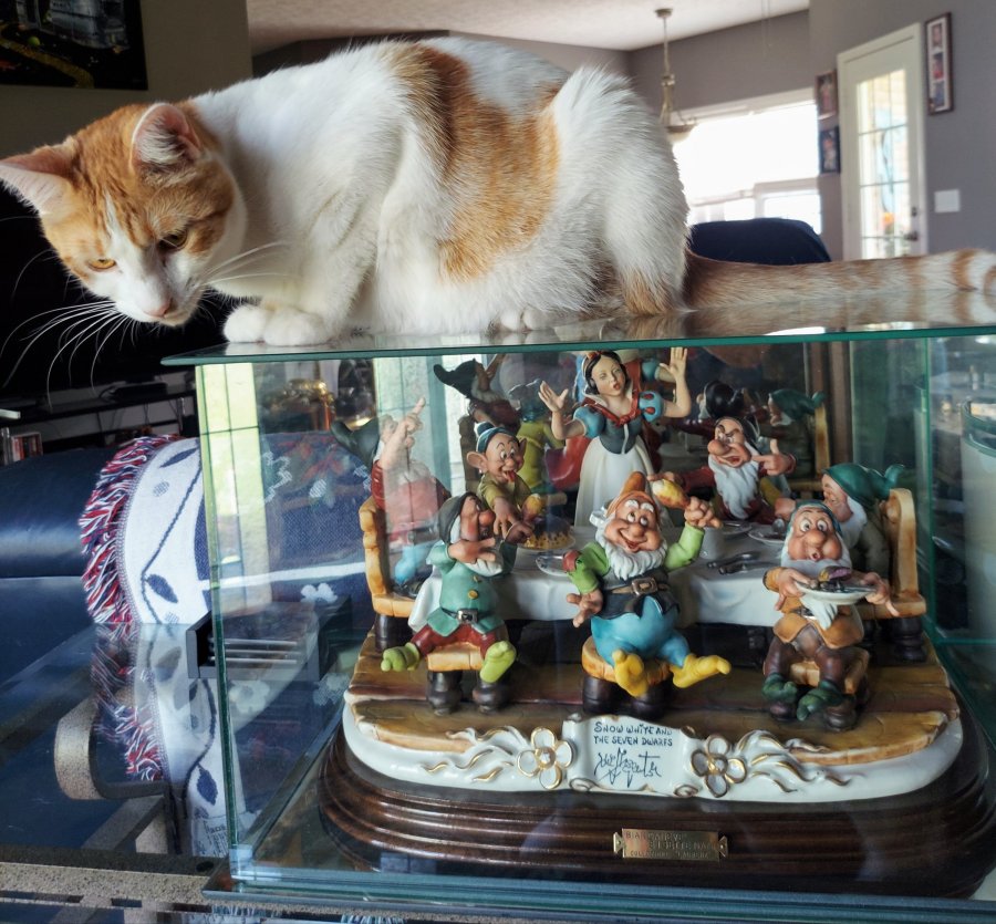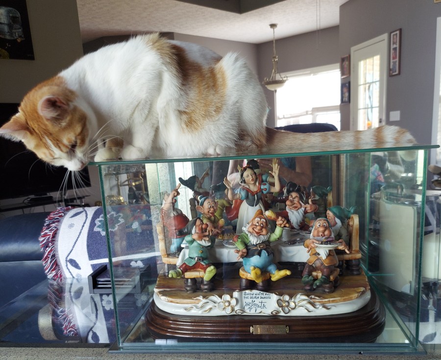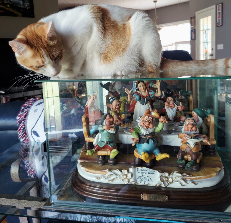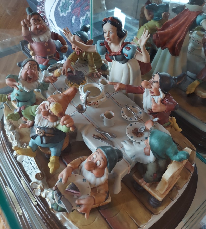 “What are you looking at, Buddy? Oh, that’s a beautiful statue that Dad bought Mom for their anvinersary. It’s called “Snow White and The Seven Dwarfs” and was an old story called a fairy tale, written way back in 1812.”