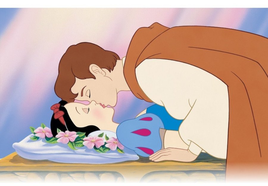 But Snow White was still in a deep sleep. The Seven Dwarfs kept watch over her day and night. Finally, Snow White’s Prince Charming arrived. He had been searching everywhere for the beautiful princess he had sung with so long ago.