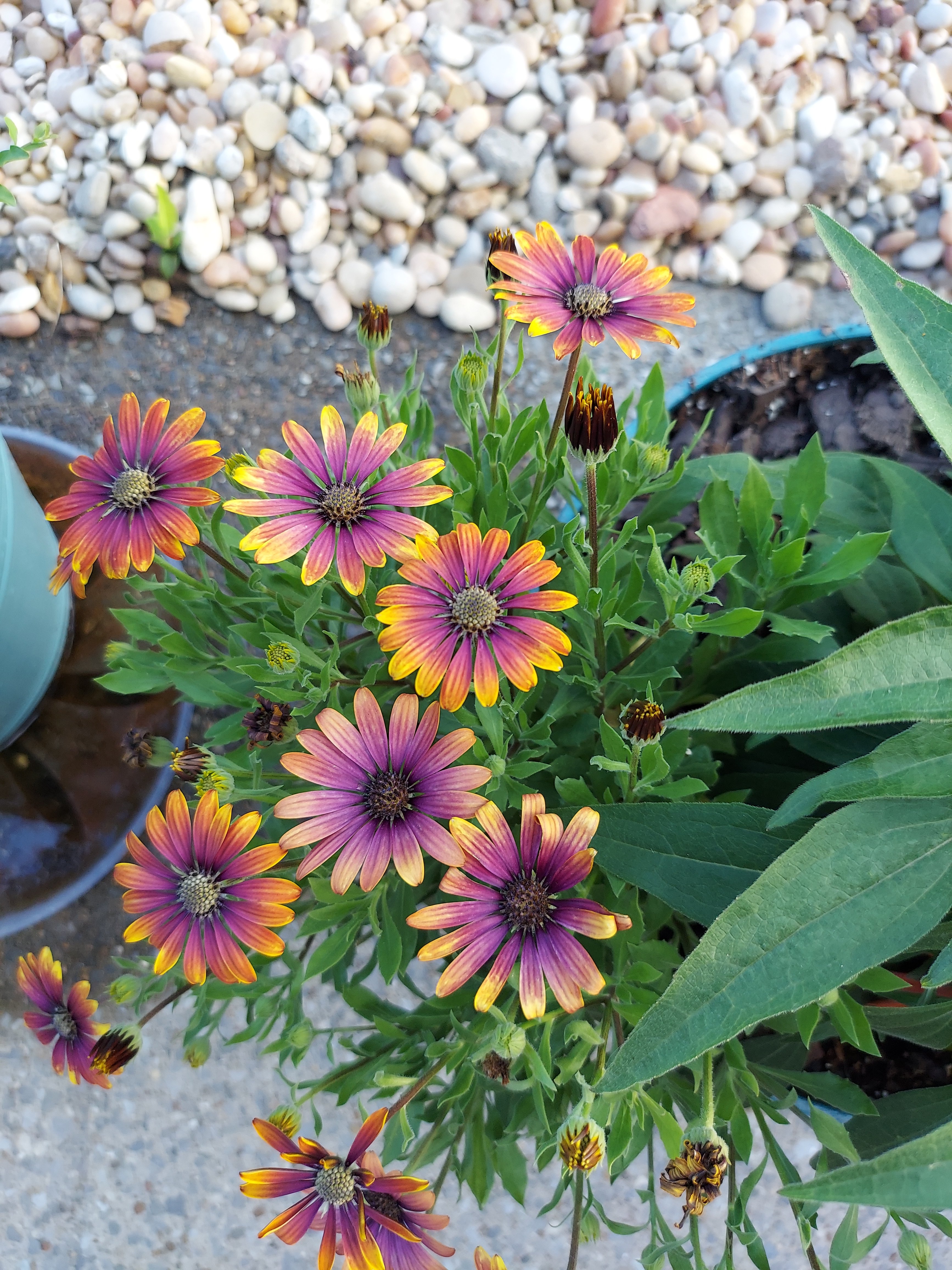 “No, Buddy, Mom has a green thumb! That means she is successful in the garden growing things. Just look how pretty the cannas are now, and look at the little green tomatoes on the plants – before there were none. “