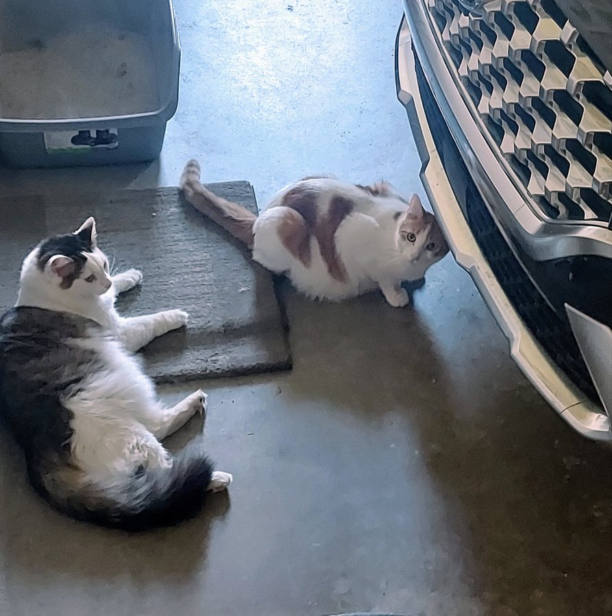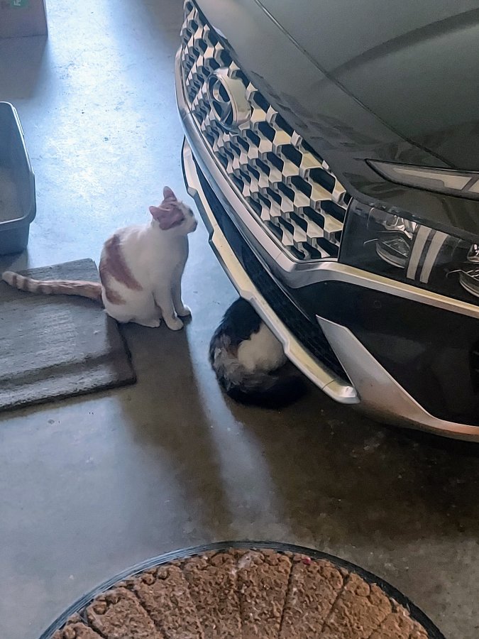 NOTE: With winter cold weather approaching, if your cats are in a garage, always honk the horn or pound on the hood if you think they could be inside the engine compartment seeking warmth!
