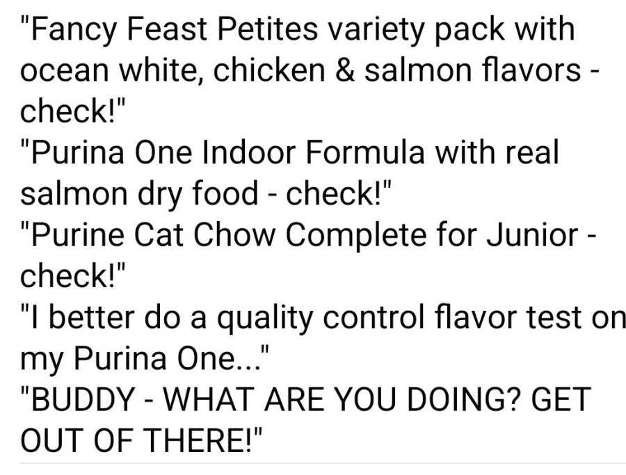 “Hmmm, Dad just opened this box from Chewy. I need to inventory it for him.”