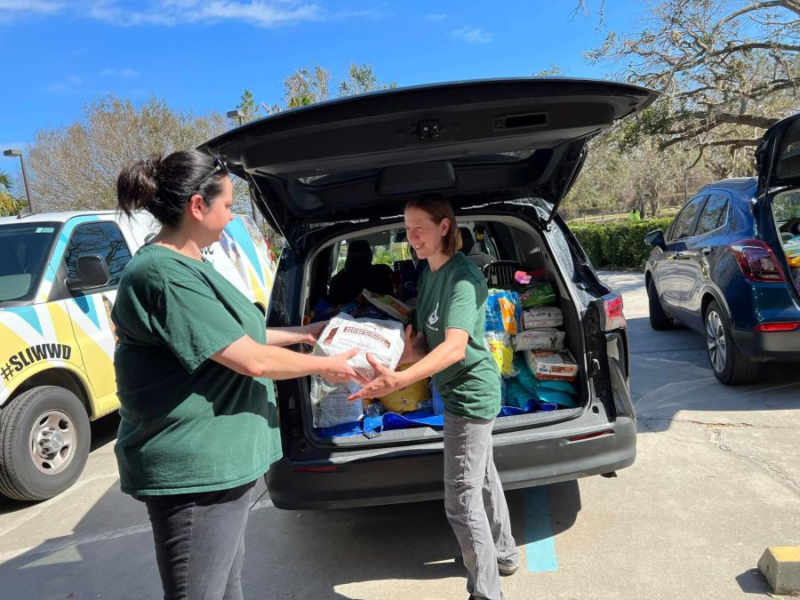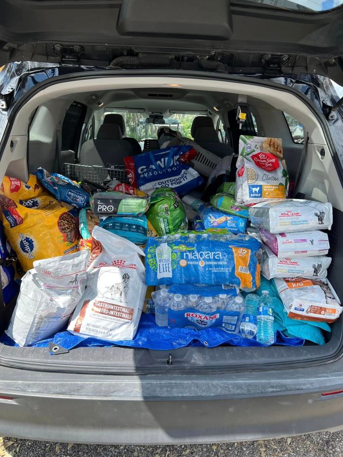 They drove about 14 hours to get there, and had a house to stay in, but it didn’t have any electricity. They went right to work visiting 6 different animal shelters, dropping off supplies and helping take care of all the animals there. They also helped a mobile vet unit from the University of Florida that provided free emergency medical care for people’s pets and handed out free pet food.
