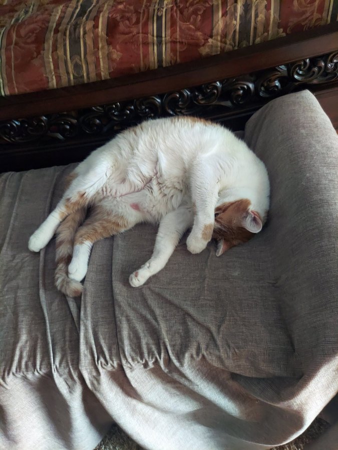 • Thanks! There isn’t much going on to write about these gray, wintery days. We sleep a lot and that’s b-o-r-i-n-g! Nicky is finally getting used to us and comes out to play late at night and early morning when Mom & Dad are asleep!