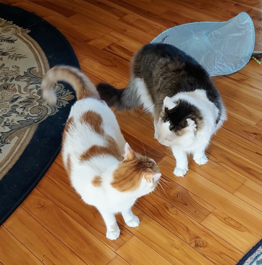 “Yes, Buddy, it sure is. And keep this our little secret – Mom has nominated Nicky for the award because he was so brave living on the streets in Florida with no claws and homeless. Then, during Hurricane Ian, he got stuck in a storm drain hanging by his neck and couldn’t get out. And now he’s living with us – so he sure deserves a reward for bravery!!”