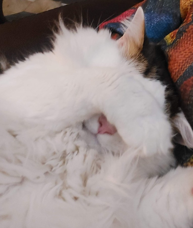 “I’ve seen Mom and Dad brushing you and Nicky – you guys have the long fur that gets mats sometimes. They have to cut them out or use an electric razor to shave your armpits. Nicky hates it but you seem to like it, Crosby.”