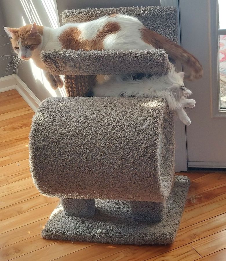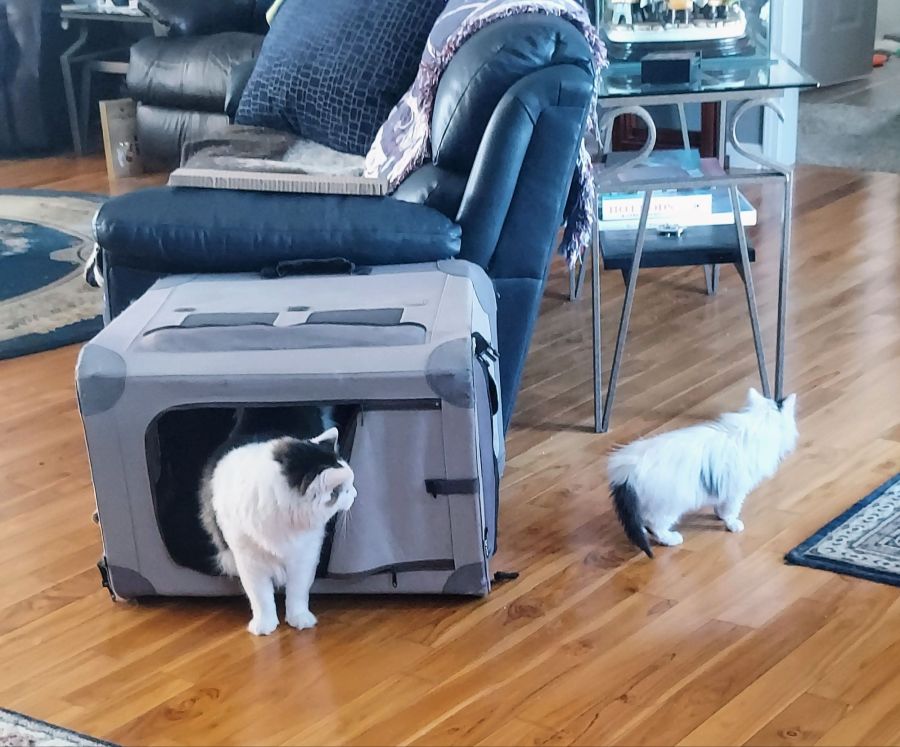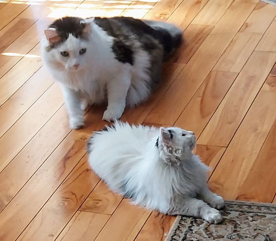 “Such a good boy, Buddy! See how Newman is copying what you do? He’s learning from you!”