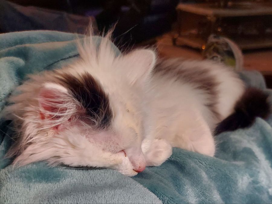 “You were tiny like that too – about 2 years ago. Kitties grow up fast!”